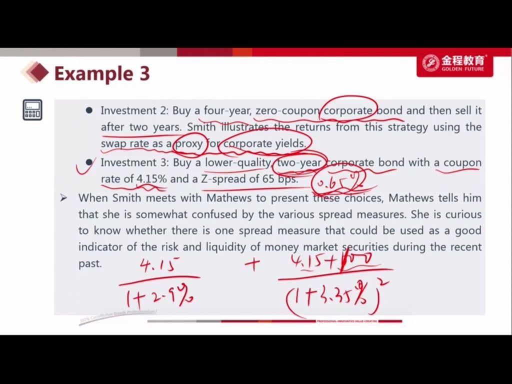 这题用计算器 pmt是4.15 n是2 ytm是3.35 fv是100可以么得数一样但没用到2.9%啊?对么?