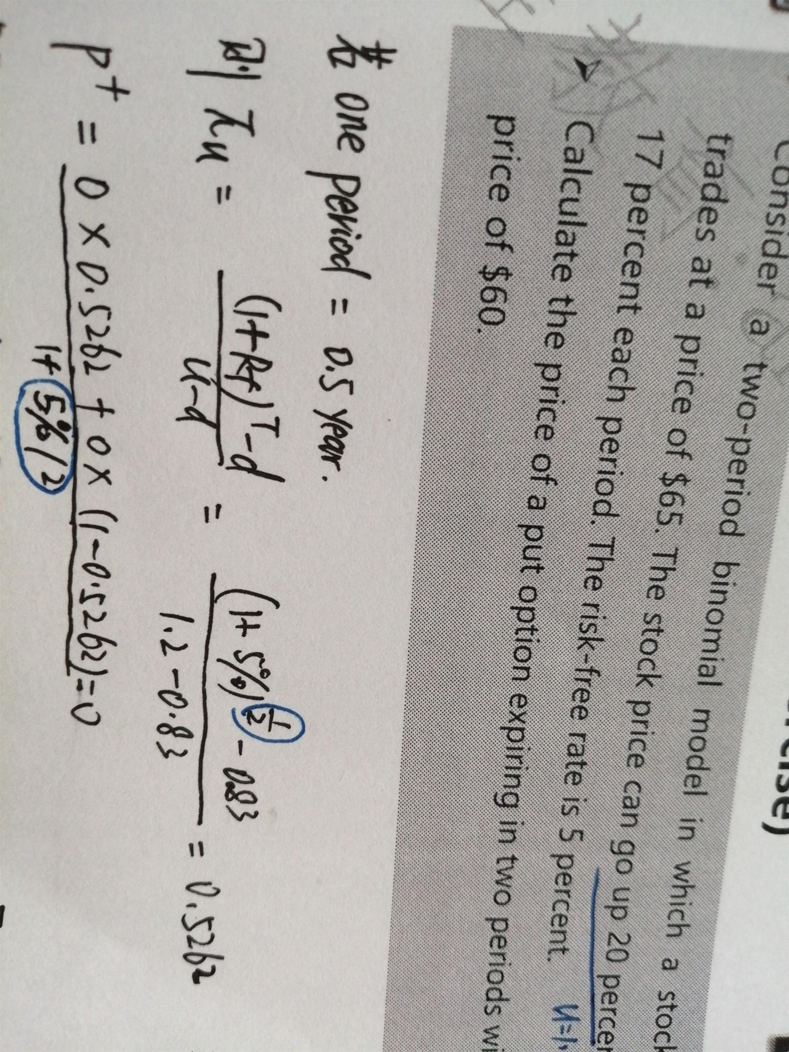 这里的one period也是默认one year 吗?n如果这里的one period是半年,这个题目的答案有哪些变化?只是折现利率变成2.5percent?上涨因子是不是也变了?
