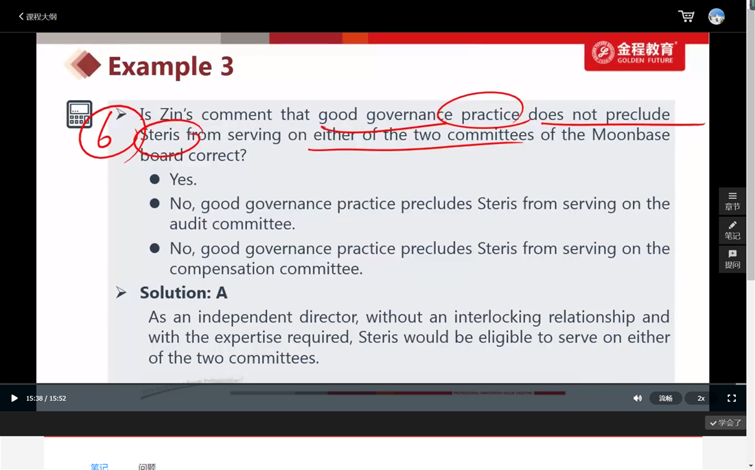老师,请教一下,这一题中,薪酬和审计委员会应该由独立董事构成,而这位Steris已经是BOARD成员,他不是独立的,那不是不能进入这两个委员会了吗?