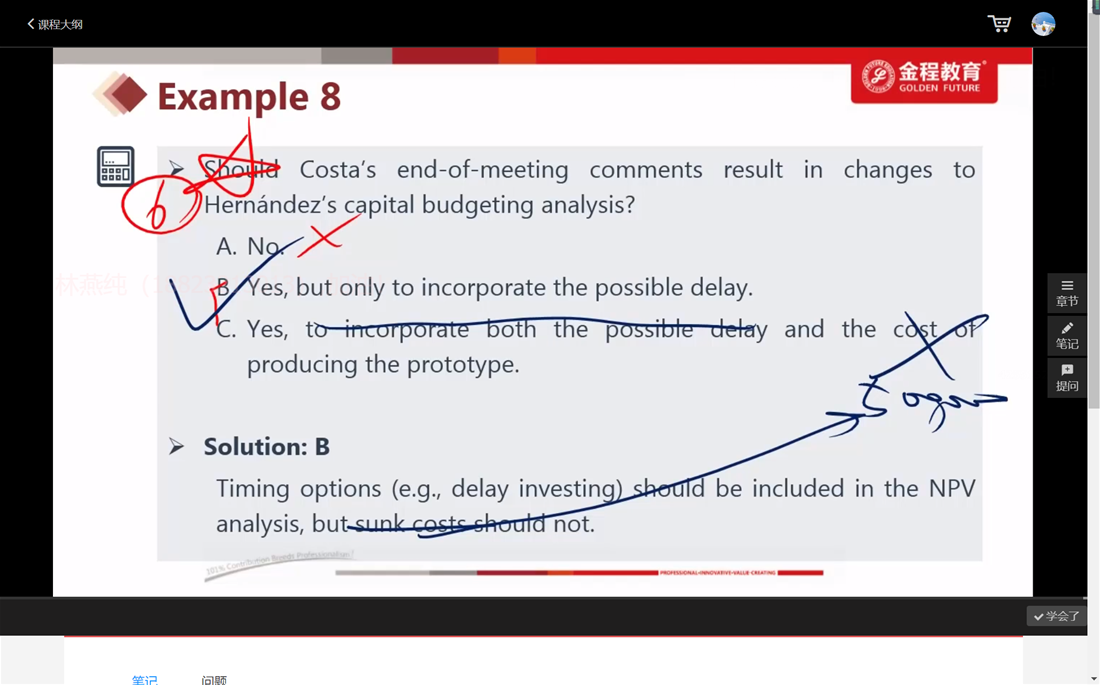老师,请教一下,这题的原文哪个描述可以看出是提供了TIME OPTION啊?这题意思不是问沉没成本要不要考虑吗?