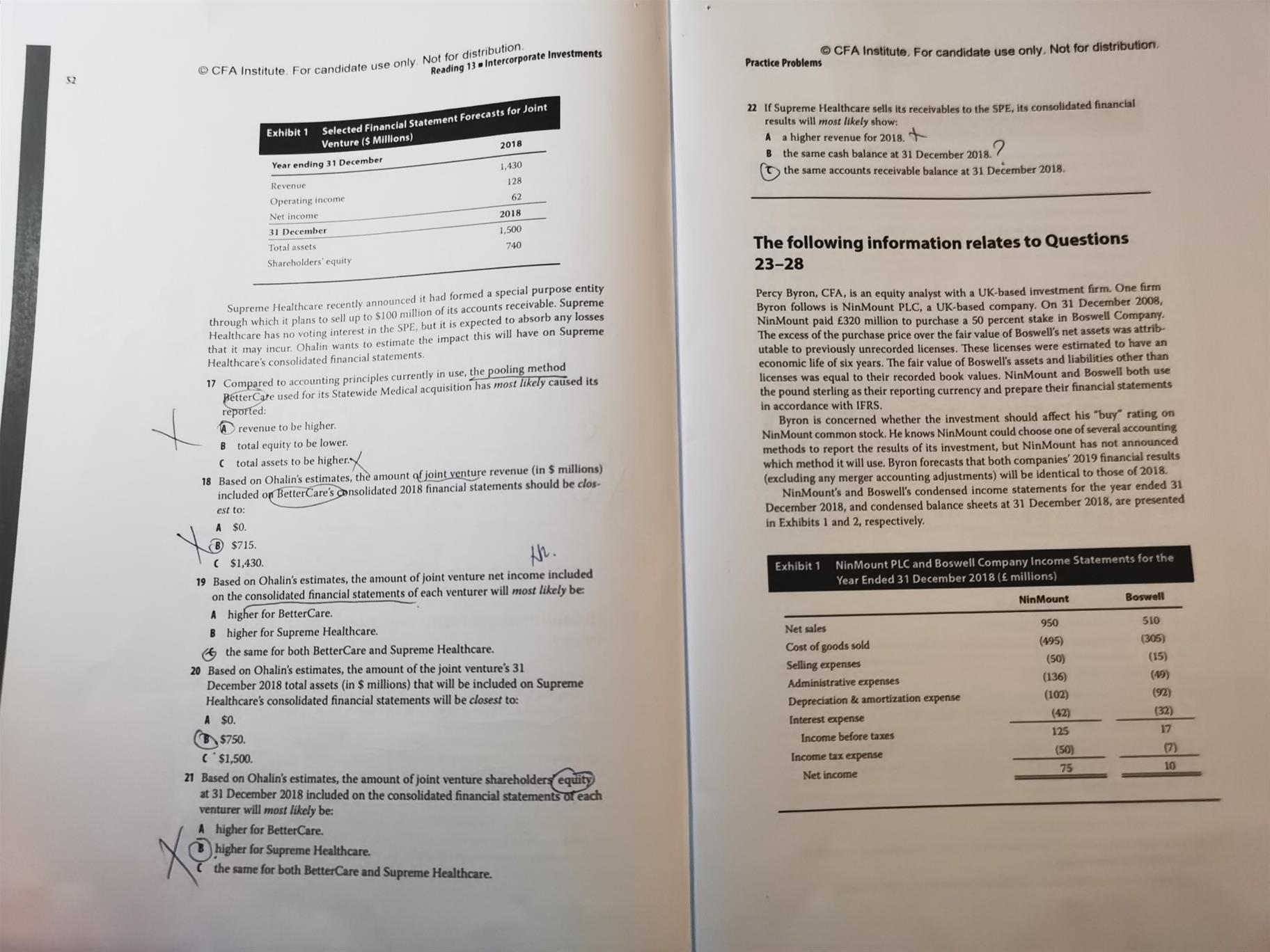 已回答第22题 B选项 把应收账款转移给spe,之后合并的报表中现金科目会怎么变化,假设其它条件都不变。我感觉现金科目也和原来一样呢?母公司现金多了,子公司购买应收账款现金少了,合并后总现金不跟原来一样吗?