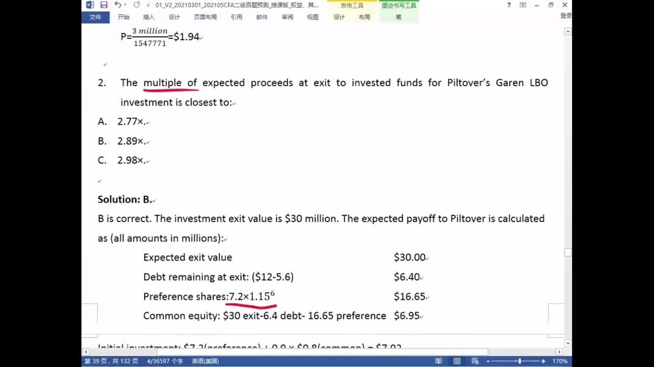 另类投资,百题第8个case,第2题。在计算LBO退出时的预期收益时,计算方法不理解。1.初始投资的20m中,12m的debt为何不算在投资的金额当中;2.这12m的debt是通过融资得到,就不算自己实际投资的钱吗,是否所有的杠杆收购,在算收益率时,都是这种算法?是否和杠杆买入股票是一个道理,算实际收益率时,只算自己实际投资的资金?
