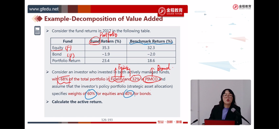 为什么上边68%和32%是portfolio的比重?鹅不是benchmark的?哪里看出的?谢谢