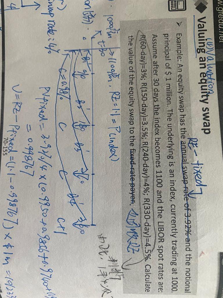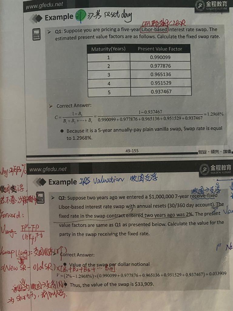 已回答第一张图中,这道题应该是支固定收RE,那我不太理解这个LIBOR,LIBOR为固定利率不是浮动利率是么?它不是伦敦银行间拆借利率,不应该是每天都有变化的么? 第二张图中Q2,也是求的Vswap,这道题是收固定支浮动是么?但其实不是求Vswap时候是New swap rate - old swap rate?这不应该是两个固定利率才会有定价么?