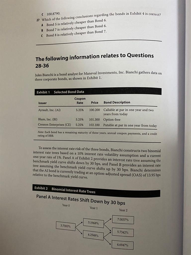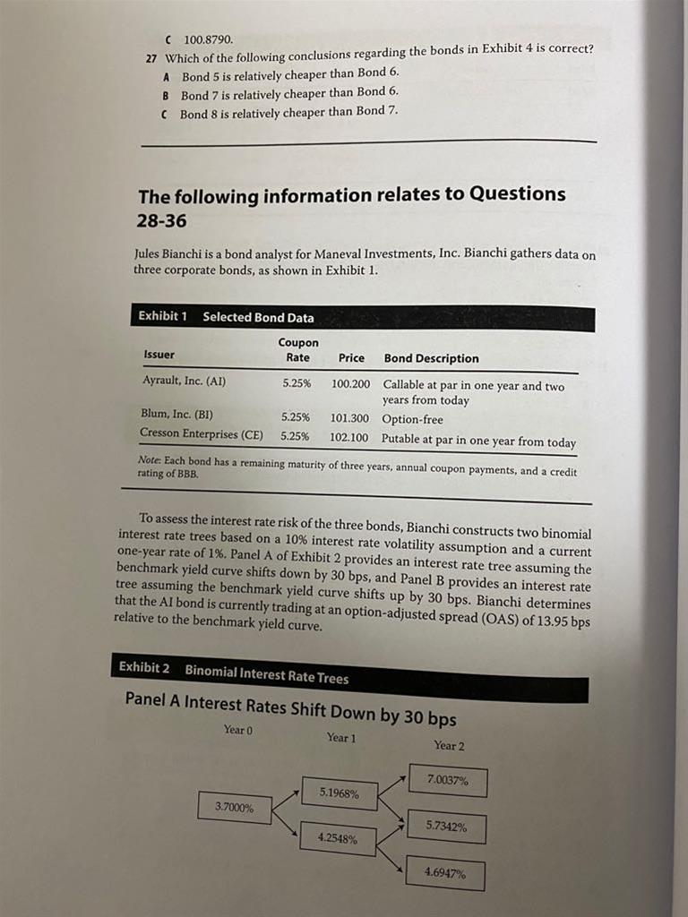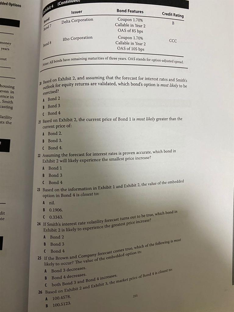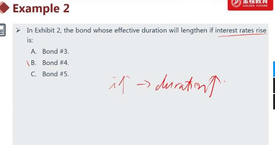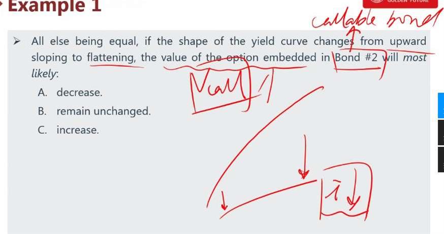 老师,利率下降 债券价格上升 value of callable bond=pure bond- call option, 那么这里债券价格上升的话需要call option下降才行呀,问题问的是option的value 是A才对吧。