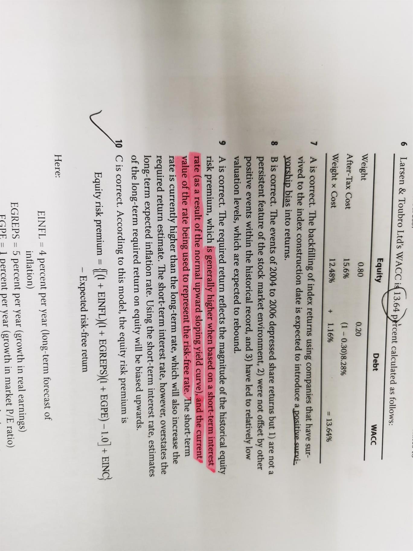 第9题 答案红色部分怎么理解?什么是用短期利率估算的required return一般都较高?
