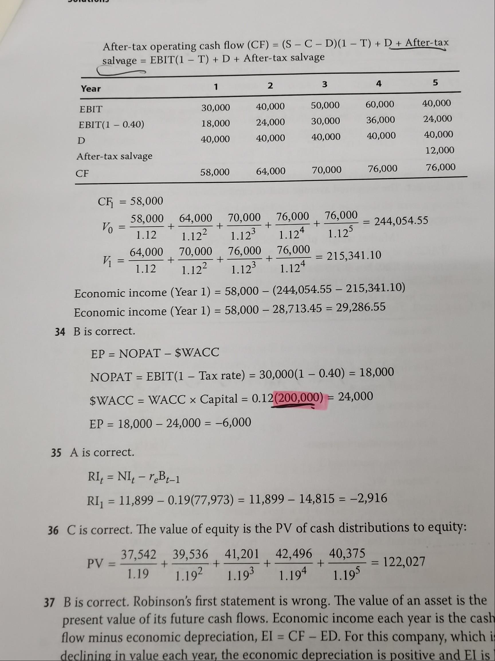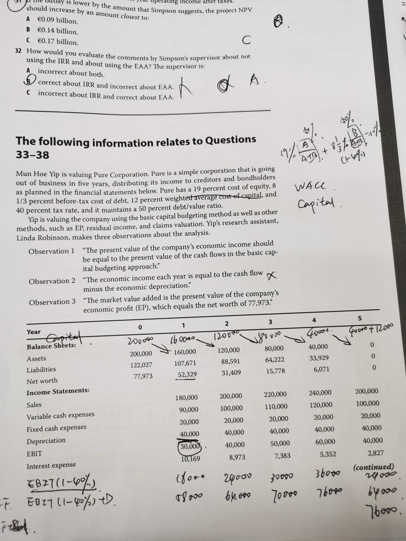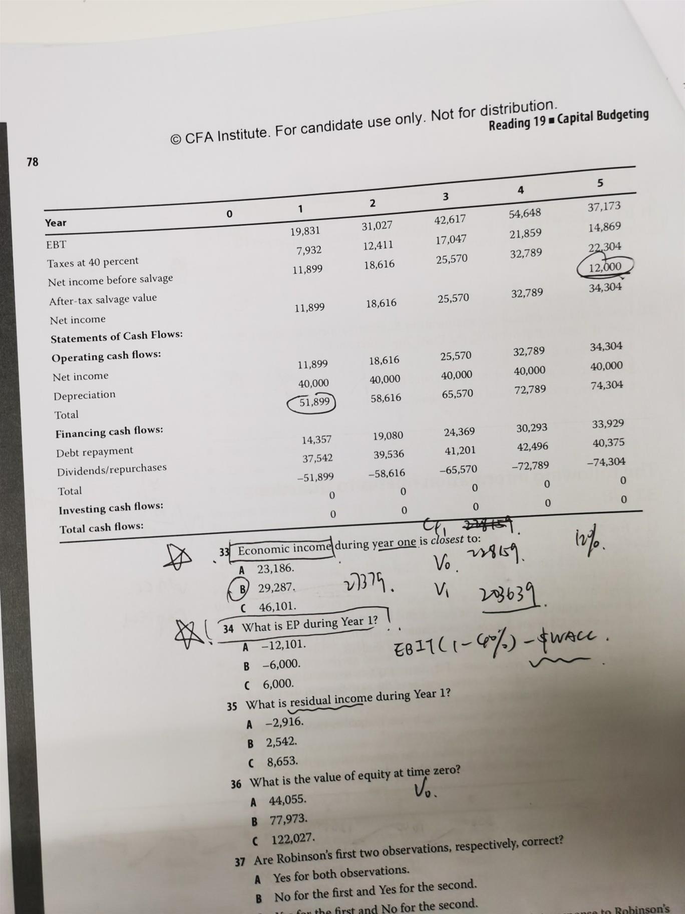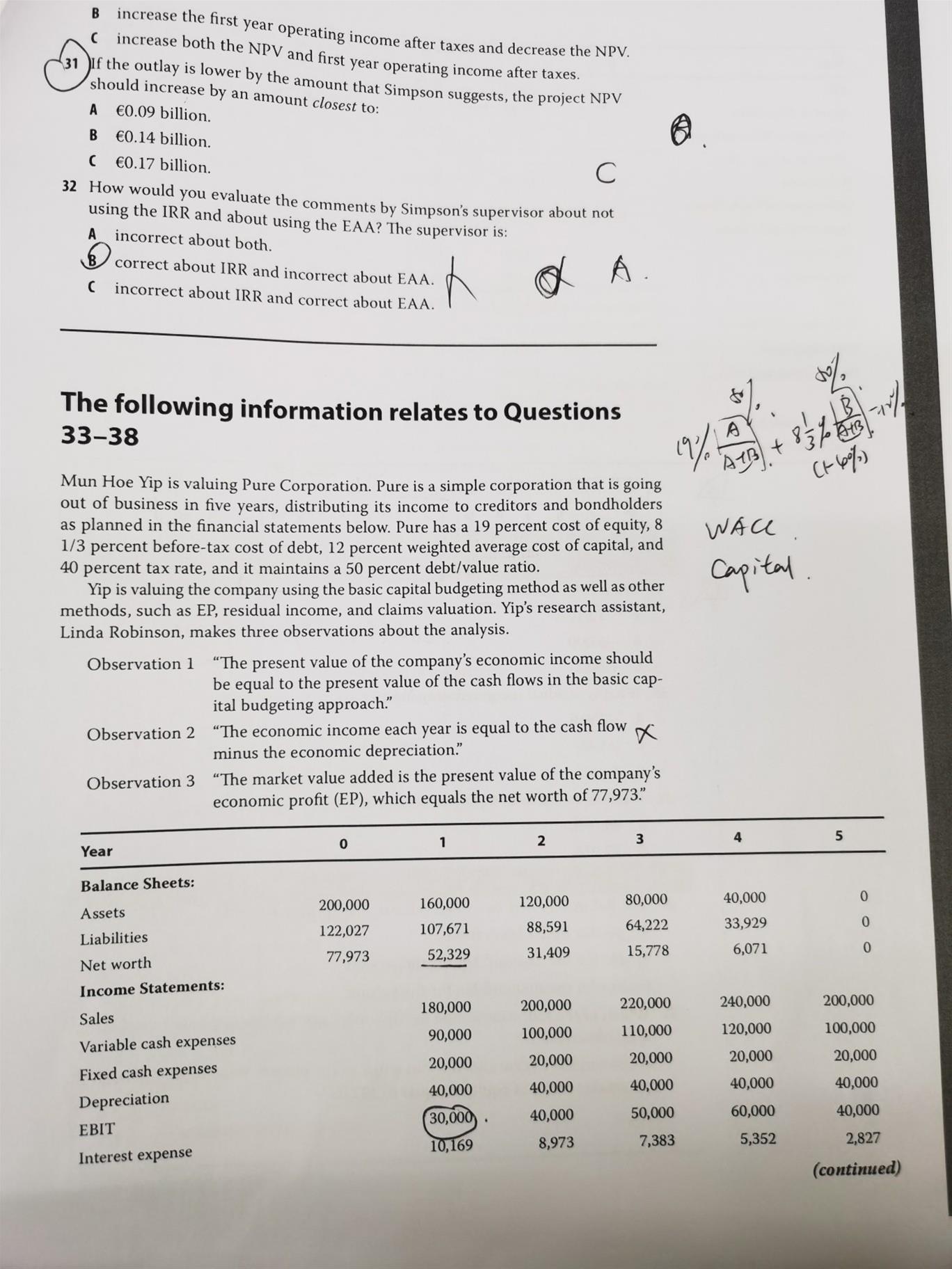 第33题答案 第五年现金流加上了税后的salvage 如果有net working capital investment是不是也要加上?如果是的话,可能会在balance sheet上怎样列示?是用第五年的current asset直接减去liability,还是再减去第四年的net working capital?
