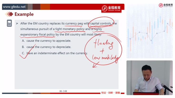 - 老师,第三题答案的意思是:1.因为宽松的货币政策,导致加元利率下跌,导致加元贬值?2.但是,如果利率下跌,也就是分母上的百分比下降,不是会导致价格上升吗?。3.从而短期看是depreciation,但是长期来看,会回归到均值,所以是appreciation?