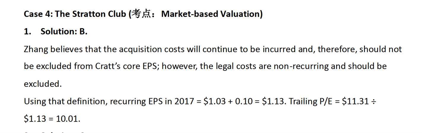 老师好这是百题equity case 4 第1题。 这里的EPS 为什么不是 1.31-0.1? EPS - non recurring legal fee? 谢谢。