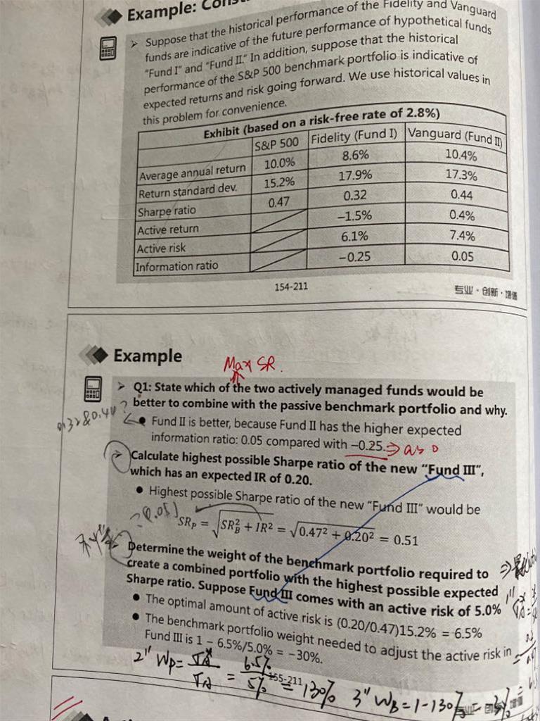此题,第一问,我可以直接看sharp ration V(0.44)大,选 fund II 么?