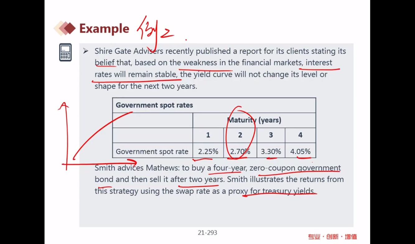 题干中swap rate as proxy 指什么?答案算出的5.42%只考虑了骑乘的capital gain, 不需要考虑两年所得的coupon 么?