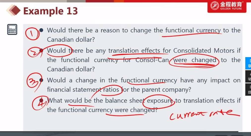 老师,还想请教您关于这个case最后一道题。这里从temporal method转换到用current exchange rate method后,不应该只是之前temporal method中non-monetary asset那部分发生了变化,从begining rate转化为了ending rate. 所以,对于exposure应该是只有这部分才对。但为什么答案是A-L的全部部分呢