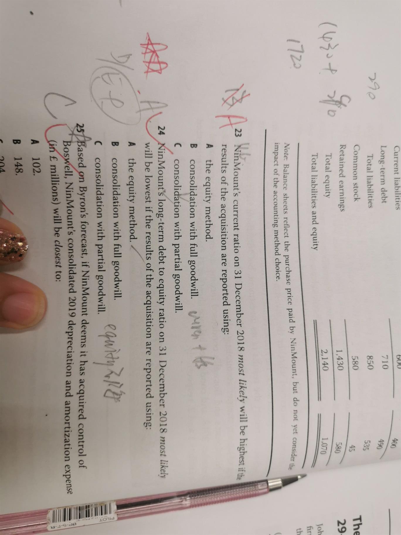 R13 24题 consolidation下为什么equity是1750 1430加上580的一半 不等于1750啊