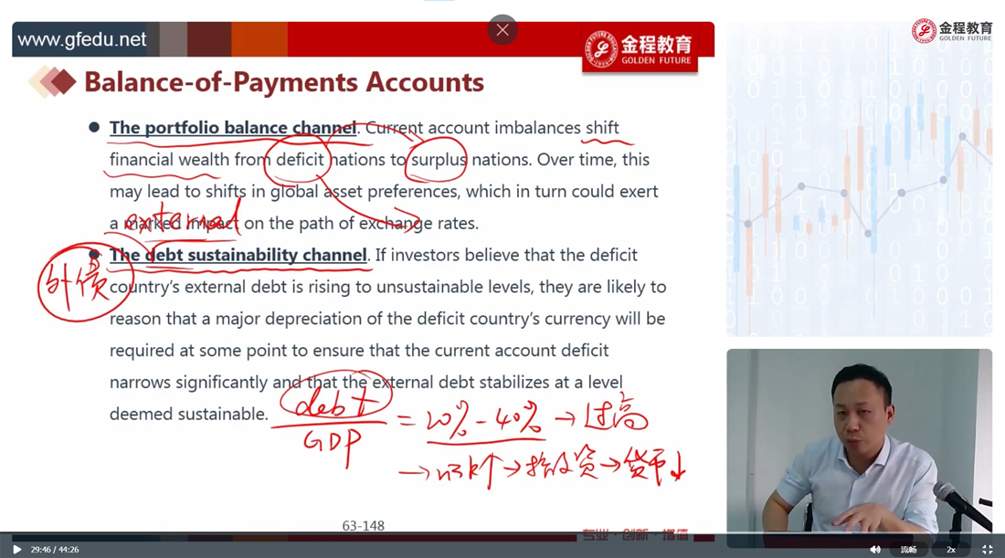 请问这里的debt sustainability channel是什么意思能在解释一下吗?老师视频里面说的是external debt增大风险上升,investor就会撤资导致本币贬值。可是那段文字里说的是,本币需要贬值来让debt减少到可控的区域,所以到底应该如何解释