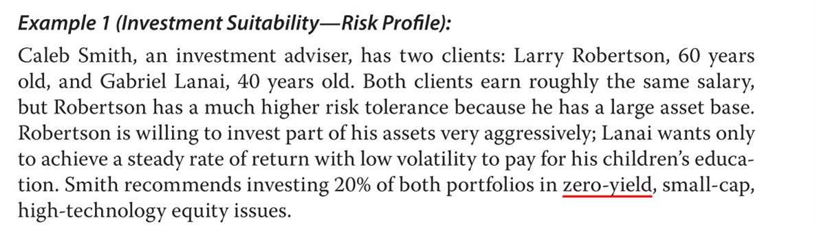 请问这个case中,为什么组合中配置zero-yield会适合Robertson这样高风险偏好的客户呢?还是说这个是组合的打底配置?