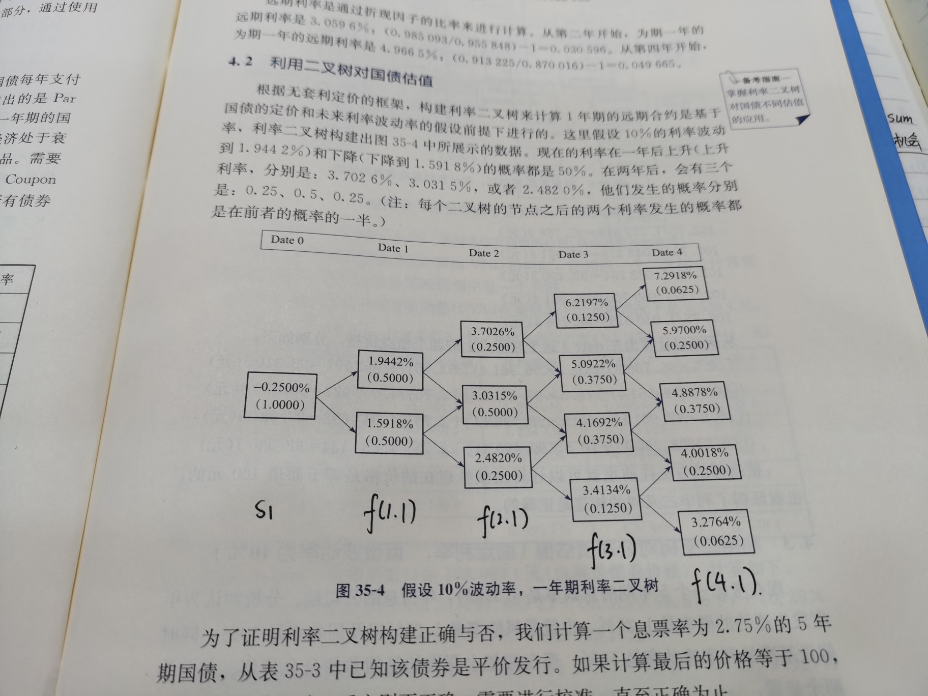 CFA二级中文书P628页的表格,和P629 页的二叉树有关系吗?如果有关系,10%的波动率是怎么加入二叉树中得到每个节点的利率的?