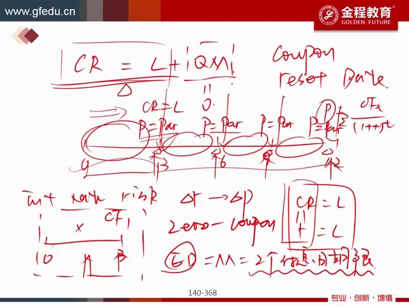 奖励131页第三行关于浮动利率债券的久期,说是到下一次利息重设置的时间,比如说每一个季度重设一次,现在是本季度的第1个月末,那么该浮动利率债券的久期应该就是两个月啦。 而截屏说的是两个利息重设日之间的时间,也就是一个季度啦。 浮动利率债券的久期,到底是现在到下一次利息重设日,还是利息重设周期呢??,怎么说呢?不知如何是好。