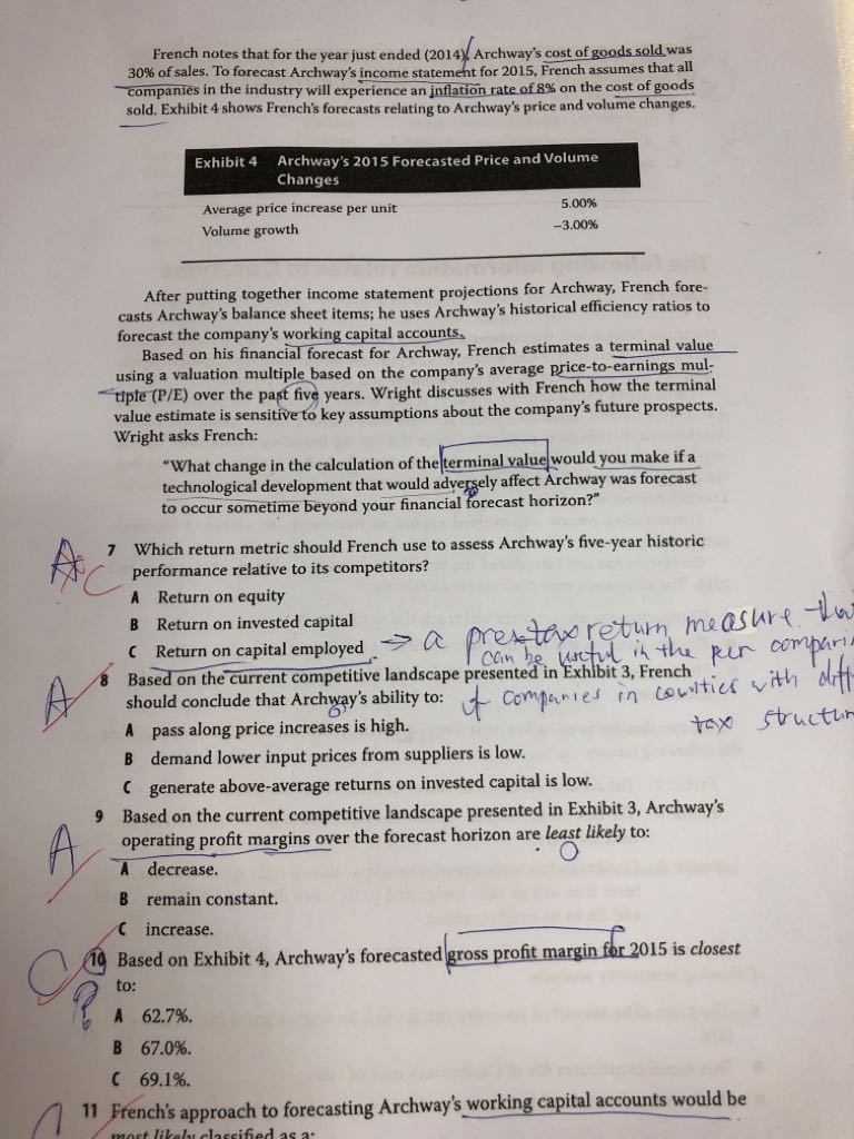 书后201页 第10题 我的计算如下 14年收入为1。14年COGS为0.3 15年收入1*1.05*0.97=1.0185 15年COGS 0.3*1.08=0.324 那么15年毛利率为(1.0185-0.324)/1.0185=68.1%