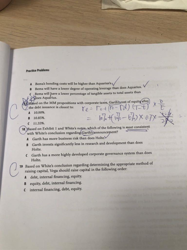 书后169页 第17题 这题我有点没有想通 计算出的无负债企业价值(也就是无负债时权益价值)280万 为什么在计算债务权益比值时不可以直接作为分母权益的价值? 18题为什么不可以选BC