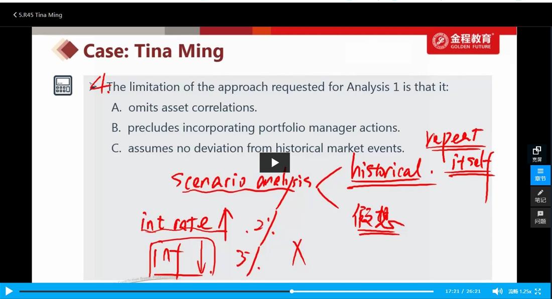 (TM Q15 )这道题 analysis 1 只提到了scenario analysis,为何判断用其中的历史法而不是假想法?前面虽然提到 historcal method 但关联的Var的小题已经结束,且这里有NEXT已做划断,所以为什么可以判断用的是情景分析里的历史法?