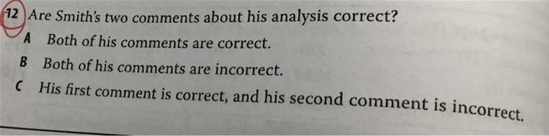 第三题,为什么这两个都是错的。 12题,为什么comment1对的,可以翻译一下并解释一下么。没看懂
