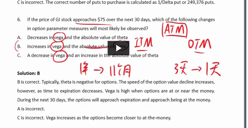 老师好 theta 应该怎么理解? theta是指过去的时间 是吗? theta 越大说明过去的时间越多, 剩下的时间越短,于是option 's value 下去。 但答案看theta 随时间的过去 反而大小是上去的。 是不是因为option value = time * /theta/ 这里time 是加熟读下去,绝对值theta 随着时间的流逝反而增大? 谢谢。