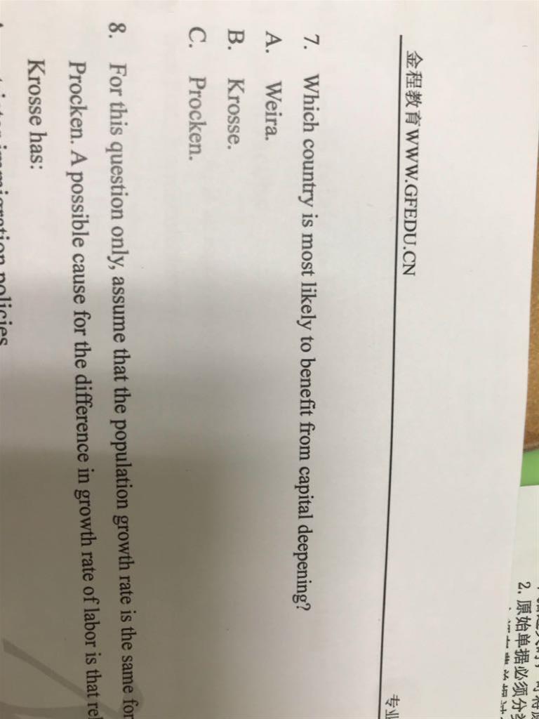 端午节的模拟试题:上午试卷 第7题:share of capital in GDP 应该是weira公司最高。用current capital base/ current real GDP