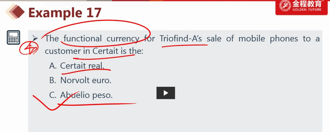 老师好,R15 课后题, 视频里example 17 这题, 可不可以理解为 看哪个是functional currency, 主要看货物是priced at which currency ,不是看货物真实交易时候的货币, 是吗? 谢谢。