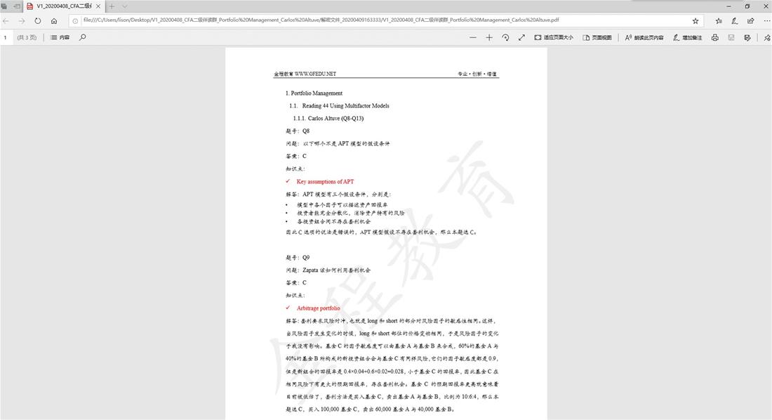 包含CFA二级传统在线课程、通关课程及试题相关提问答疑;