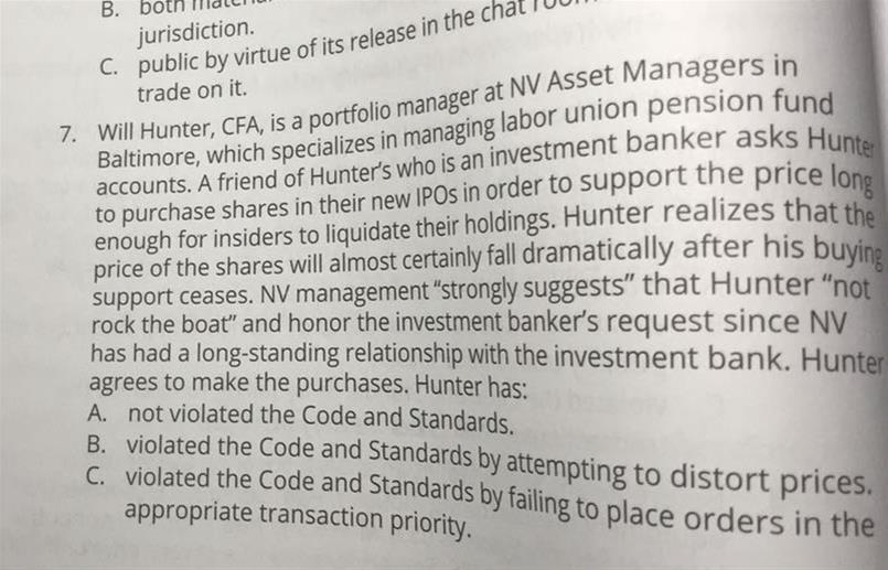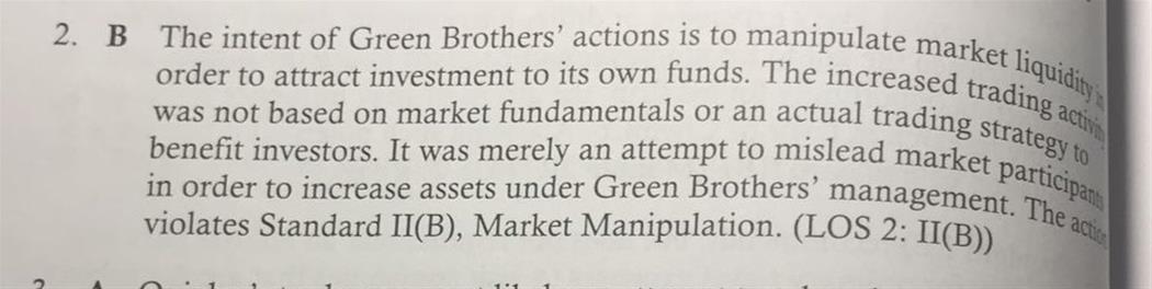 Notes Module 2.3 第7题。文章中虽然提到“to liquidate their holdings”,但Hunter的行为依然属于违反道德准则的行为。这一行为不属于【增加市场流动性】的特殊情况吗?