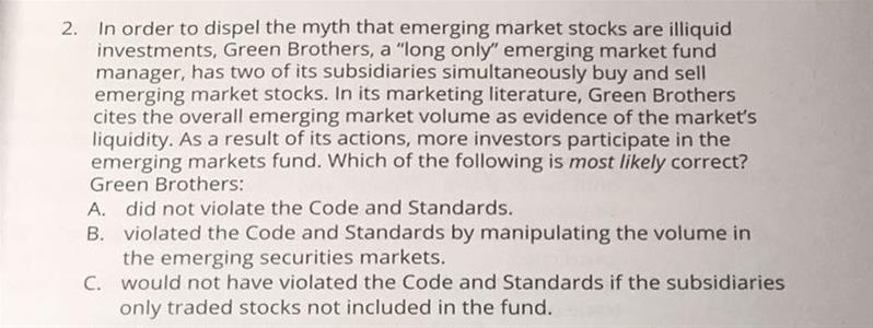 Notes Module 2.3第3题。题目中明确提到“in its marketing literature”,也就是这种交易策略属于明文规定的企业文化,所以我认为它应该属于特例(不违反标准),但答案却显示这一行为违反标准(属于操纵市场)。为什么呢?