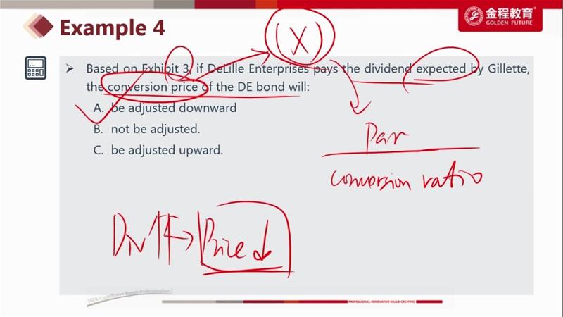 conversion price 只跟发行价格和ratio有关系,跟这个股利发放没关系,老师没展开说明白,烦请解释