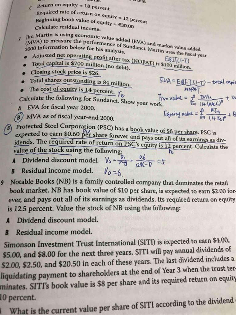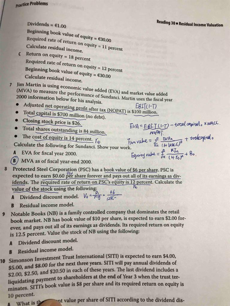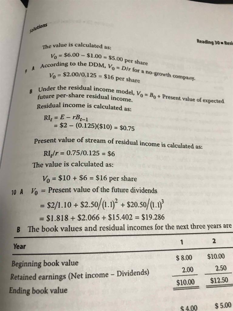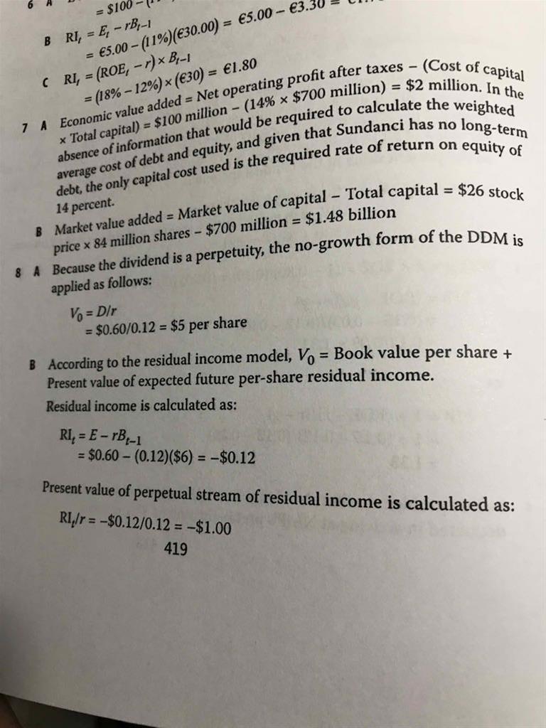 老师,第8题book value per share 对应的是book value of equity 还是book value of total capital 呢?RI还能是负值吗?折现时为什么不是除以1.12呢?