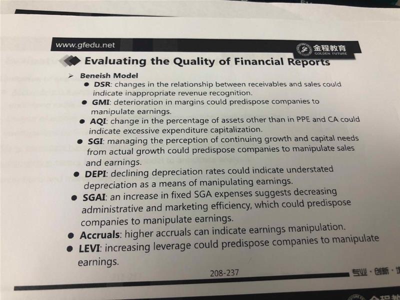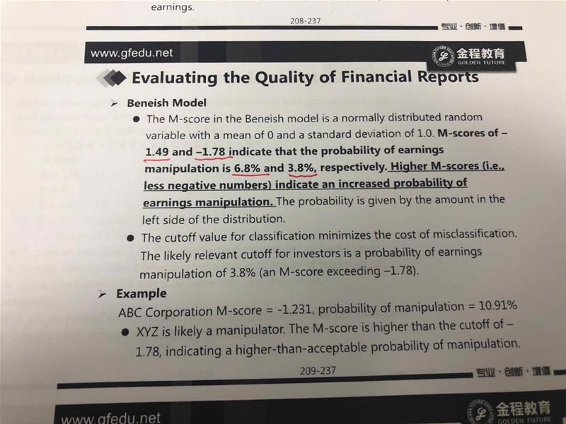 老师好,M-score 的8个参数DSR GMI……等等如何计算出来的,这些是要自己背的是吗??考试可能只给资产负债表 利润表,和M-score系数,然后自己算参数? 然后这个1.49 -1.78对应的造价概率 6.8% 3.8%需要记吗?