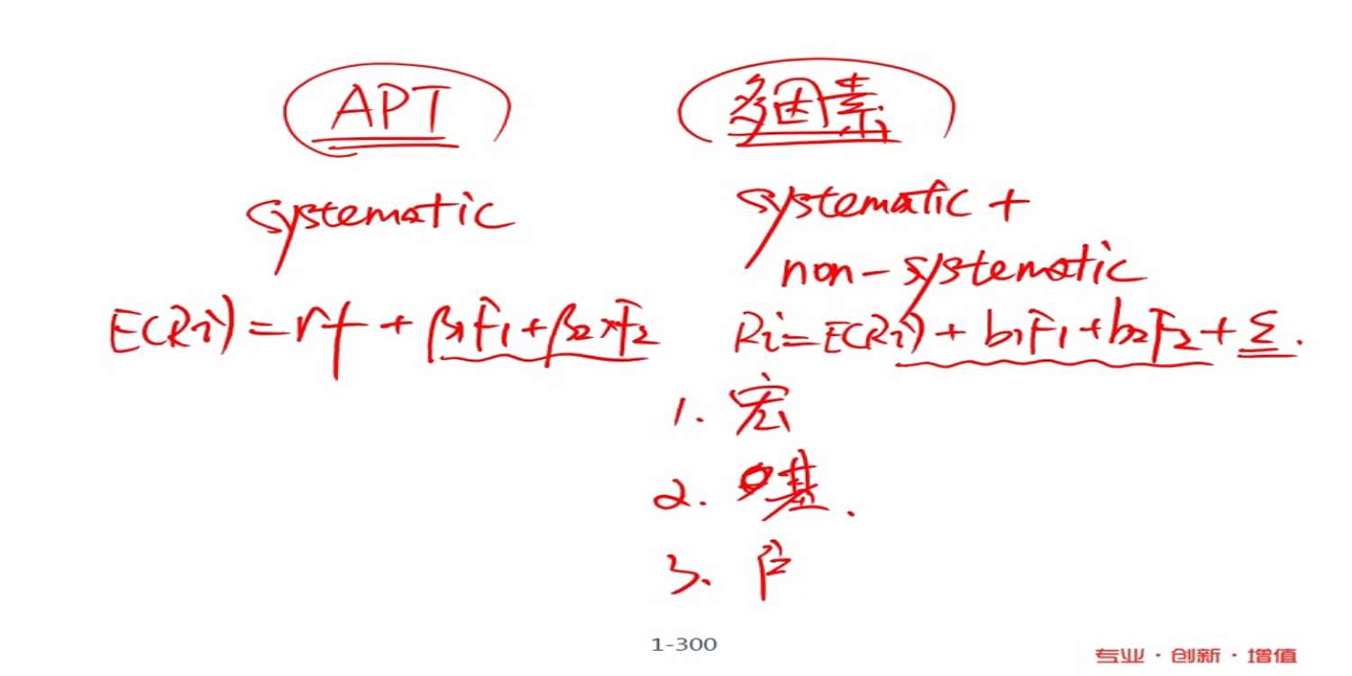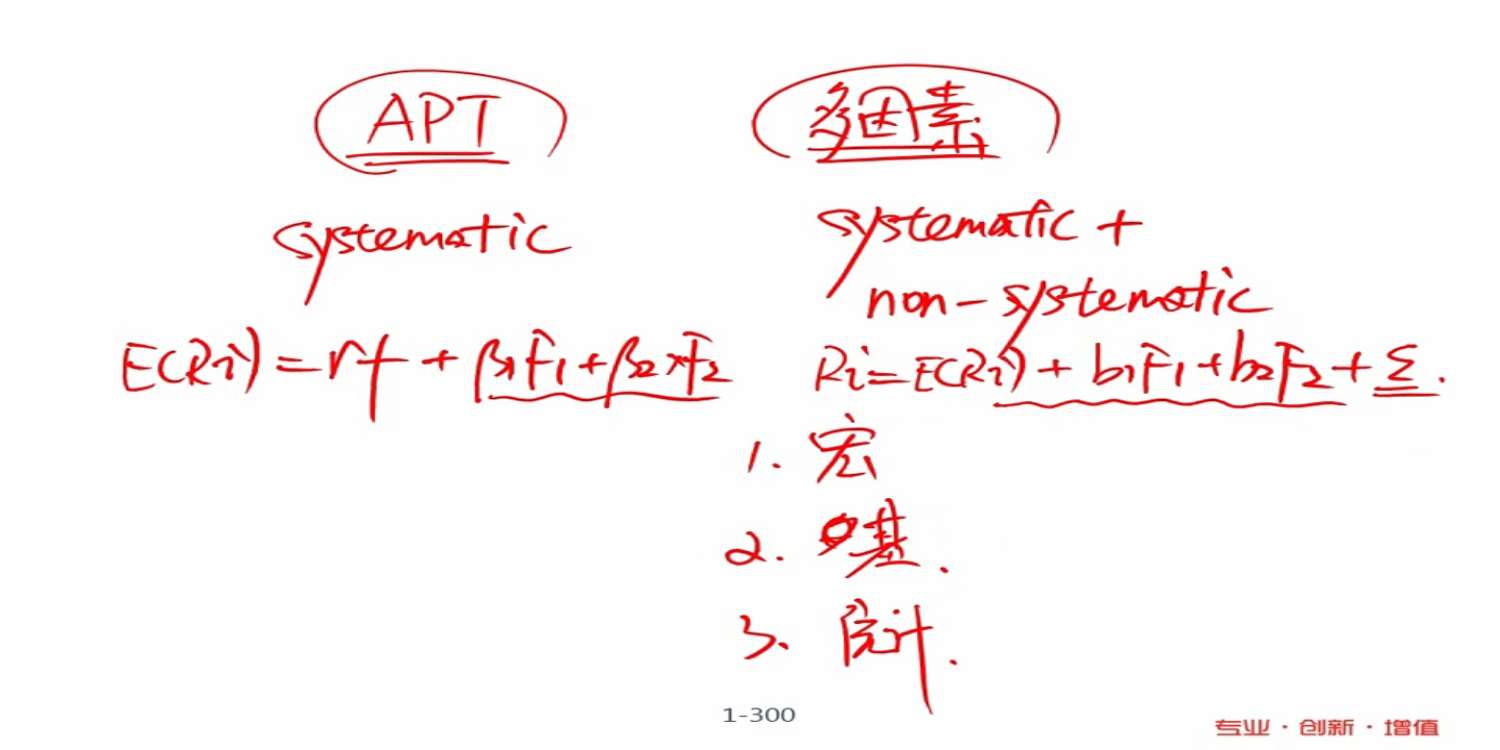 老师好,这些模型的观察期,和表现期分别是什么? 多因子模型和APT模型 中的X和Y 都是同期的吗,比如用Xt表达Yt, 而不是用Xt表达Yt+1.如果是用Xt表达Yt,那怎么去做预测呢?实际中怎么用这些模型去预测收益率呢?如果用Xt表达Yt,那只是用Xt解释Yt吧,而不是预测Yt吧,如果预测的话,应该用Xt表达Yt+1吧?这些模型做出来后,把某一时刻的X带进模型,算出收益率Y, 这个Y能直接用于买卖股票的判断吗?或者需要带入现金流折现模型,作为cost of equity来使用?那么问题又来了,如果把这个模型算出来R,带入现金流折现模型,现金流折现模型是预测未来,可预见的几年,和永续增长的几年,用这个R代表未来的cost of equity 合适吗?cost of equity 在未来不会变吗?理论依据是什么?