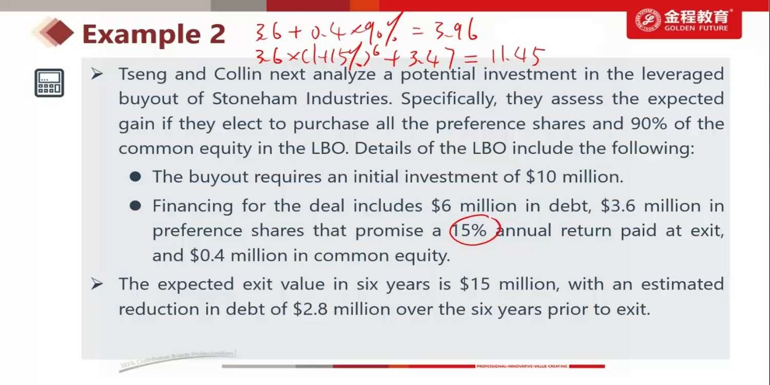 这个地方老师讲错了 普通股不是3.47, 应该是3.47*90%。这样才是PE出资的FV11.45