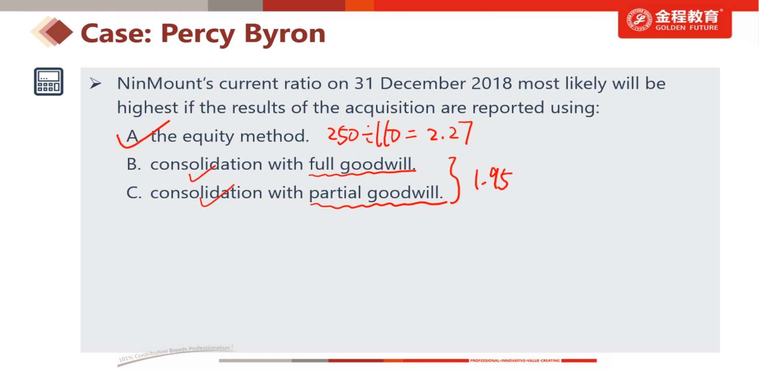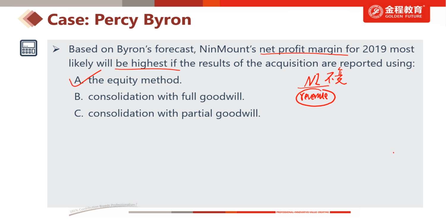 哈喽,Q4本题没有goodwill,full与partial时MI相同。若有goodwill时,full的MI高一些吧