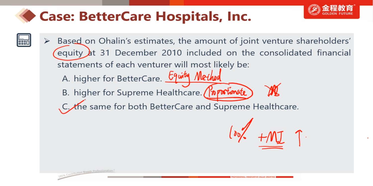 哈喽,这一题,propotion法与equity法。NI没有区别,但是asset有区别,equity没区别?