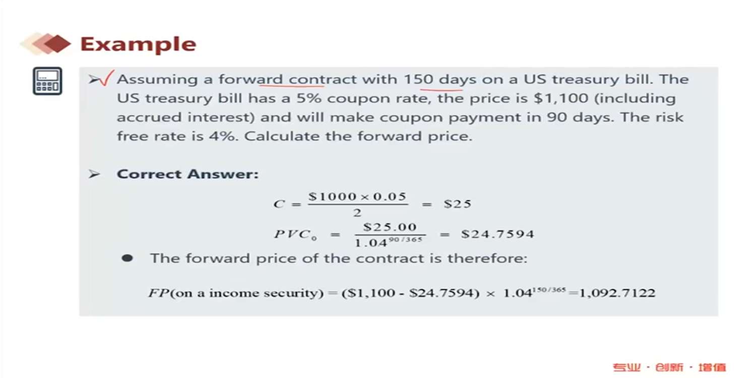 老师想问一下为何我总算出跟答案会差几位小数?比如本页的题目,我全程用计算器一次性按出来的,也是一样的计算公式。结果forward price是1092.7119,不太清楚答案里面的1092.7122是怎么算出来的?