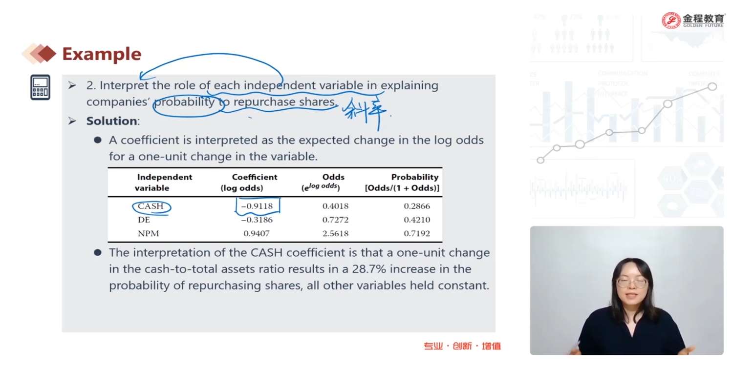 请问这里的计算为什么忽略了其他部分的系数,直接代入cash的系数到e*()中,P=1/(1+e^-(b0+b1*x+……)中的b0等系数不带入吗?