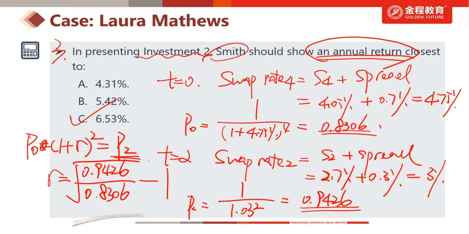 老师,第三题算出的P2是2年之后之前的卖出价格吗?题目中解出来的是0时刻的现值啊。我理解的return应该 = 卖出价格/买入价格 - 1再折算成年化。我哪里理解错了吗?