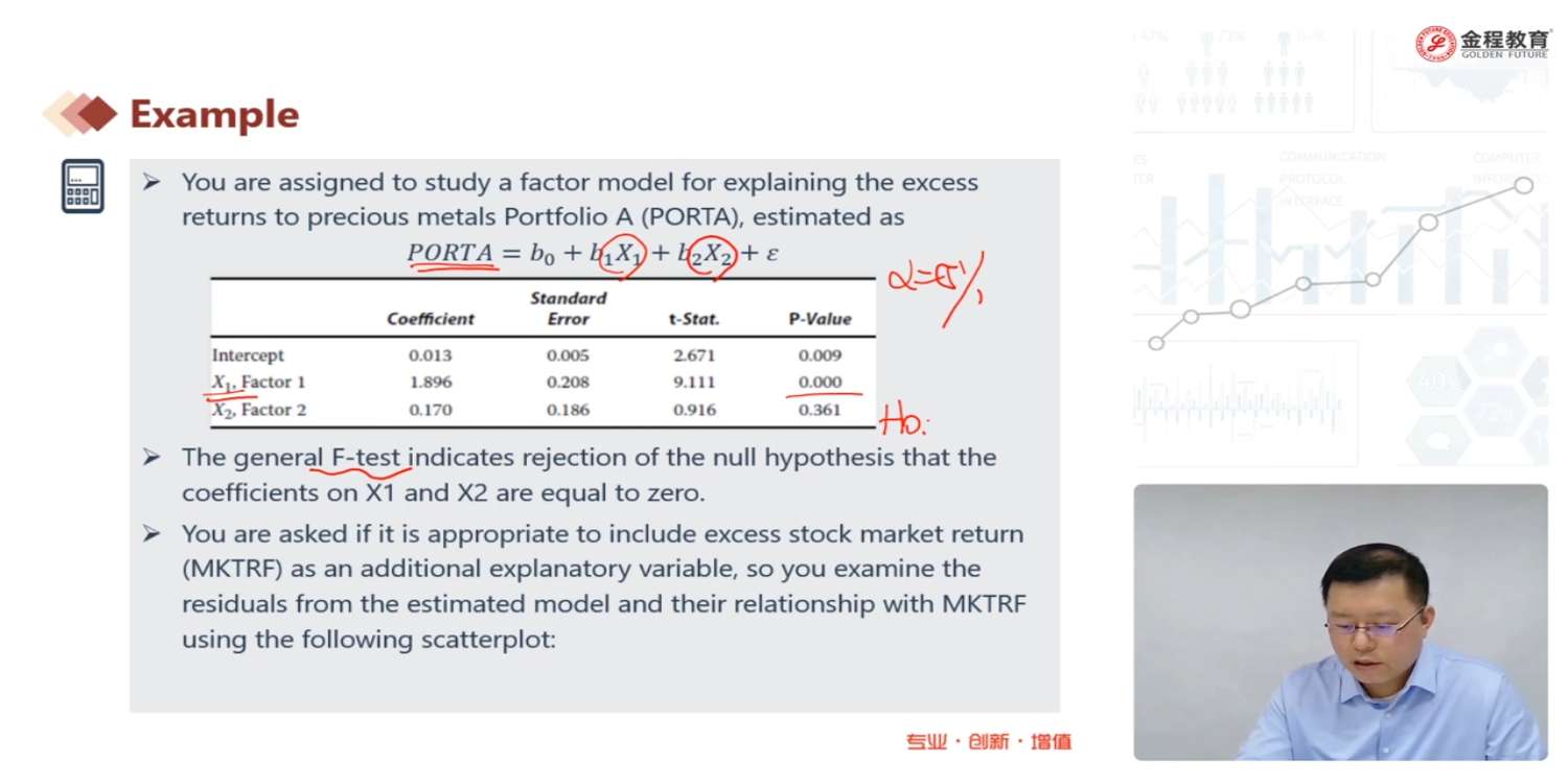 X2的P-value 大于5% 不显著吧? 只有X1显著, 那就可以拒绝原假设x1=x2=0?