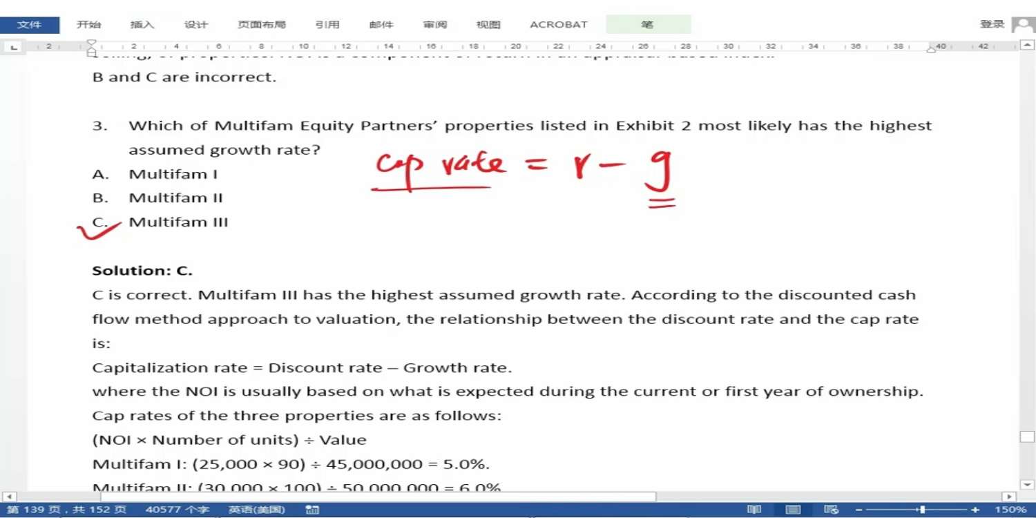 第三问增长率可以用更快捷的方法吗,比如我知道NOI per unit和unit,我乘出来是总的NOI,然后对比市场价,因为未来总是会趋近市场价平衡,所以我用市场价除以总的NOI算出来一个上升倍数,2x 1.67x 和2.5x 算出来三的增长潜力最大