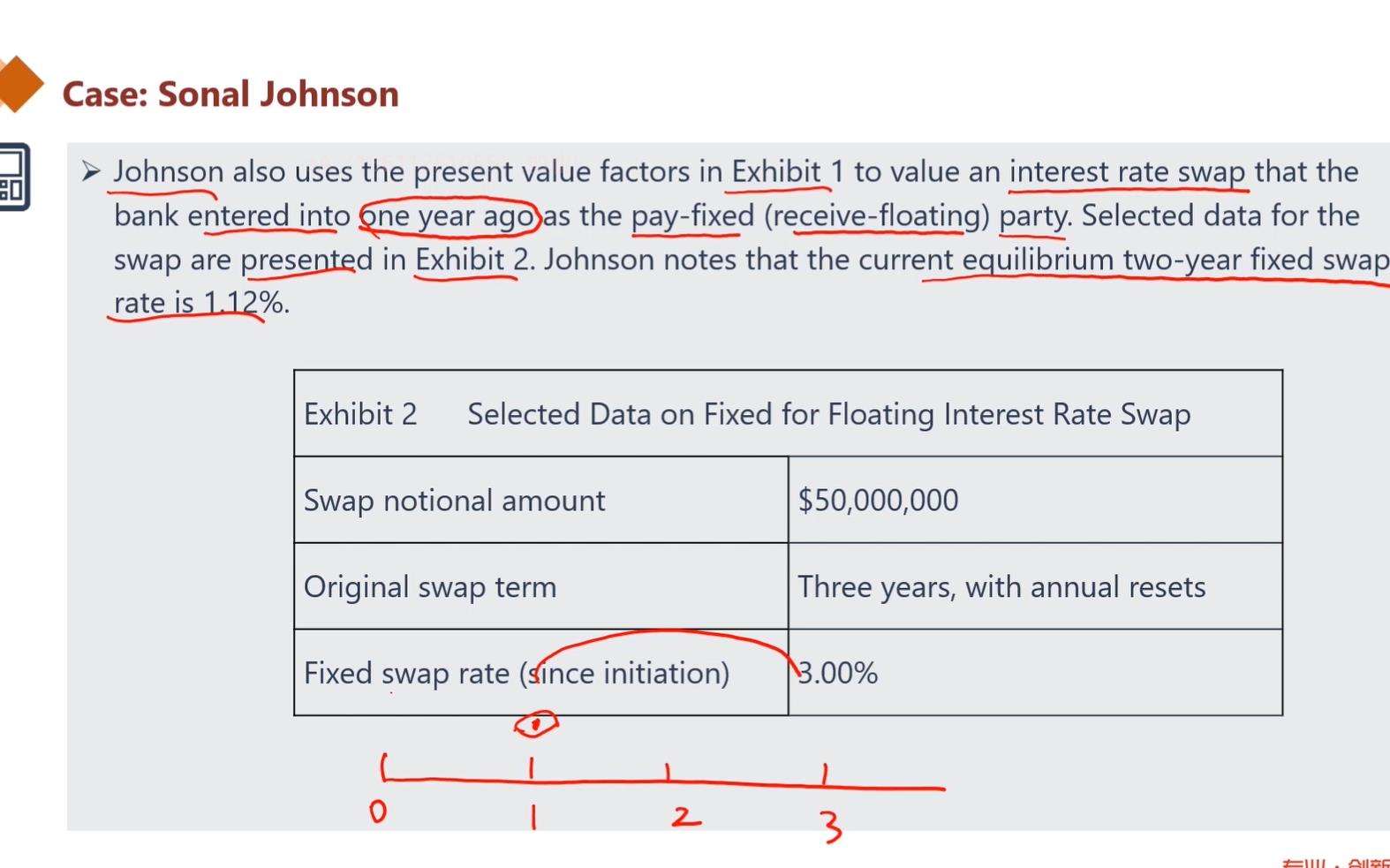 老师好!请问衍生课后题第二题第二问里,一个三年的swap,bank“......enter into one year ago as the pay-fixed ( received floating) party”,这里我搞不清楚小t的时间点,bank一年前进入这个合约,小t从t=1开始,我咋搞不明白这个时间点,我怎么感觉小t是从-1开始。弄不清楚,请老师讲一下,谢谢!