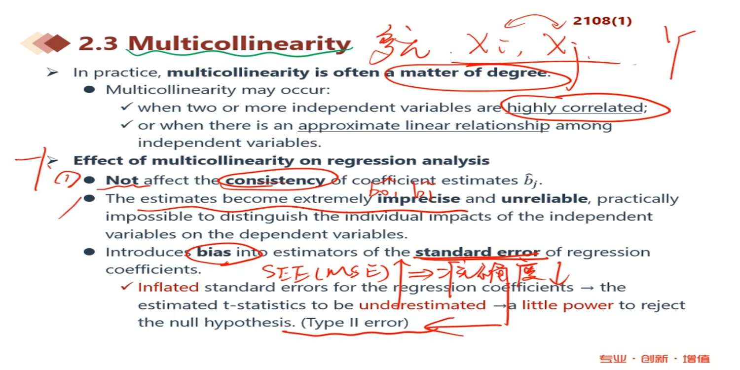 多重共线性时,SEE按理不是变小吗,因为有更多的解释,所以Sb Cap变小, T统计变大,Type 1更多,不太理解了