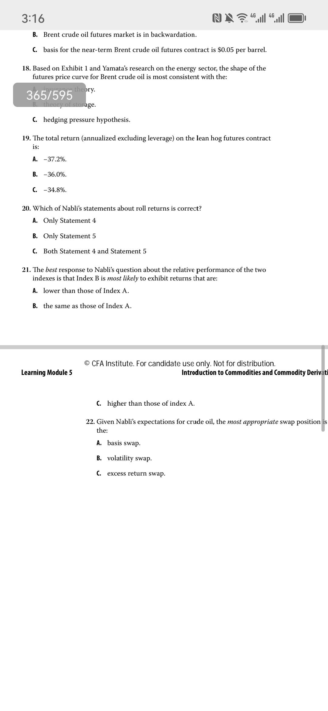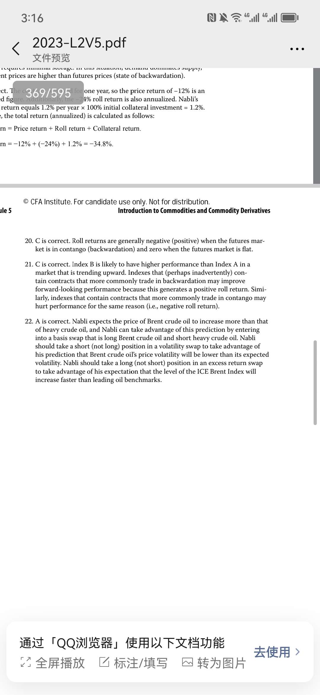 21题解释没看懂, A升水 B贴水,按理A表现更好,答案只考虑roll,可price return影响比roll return大多了