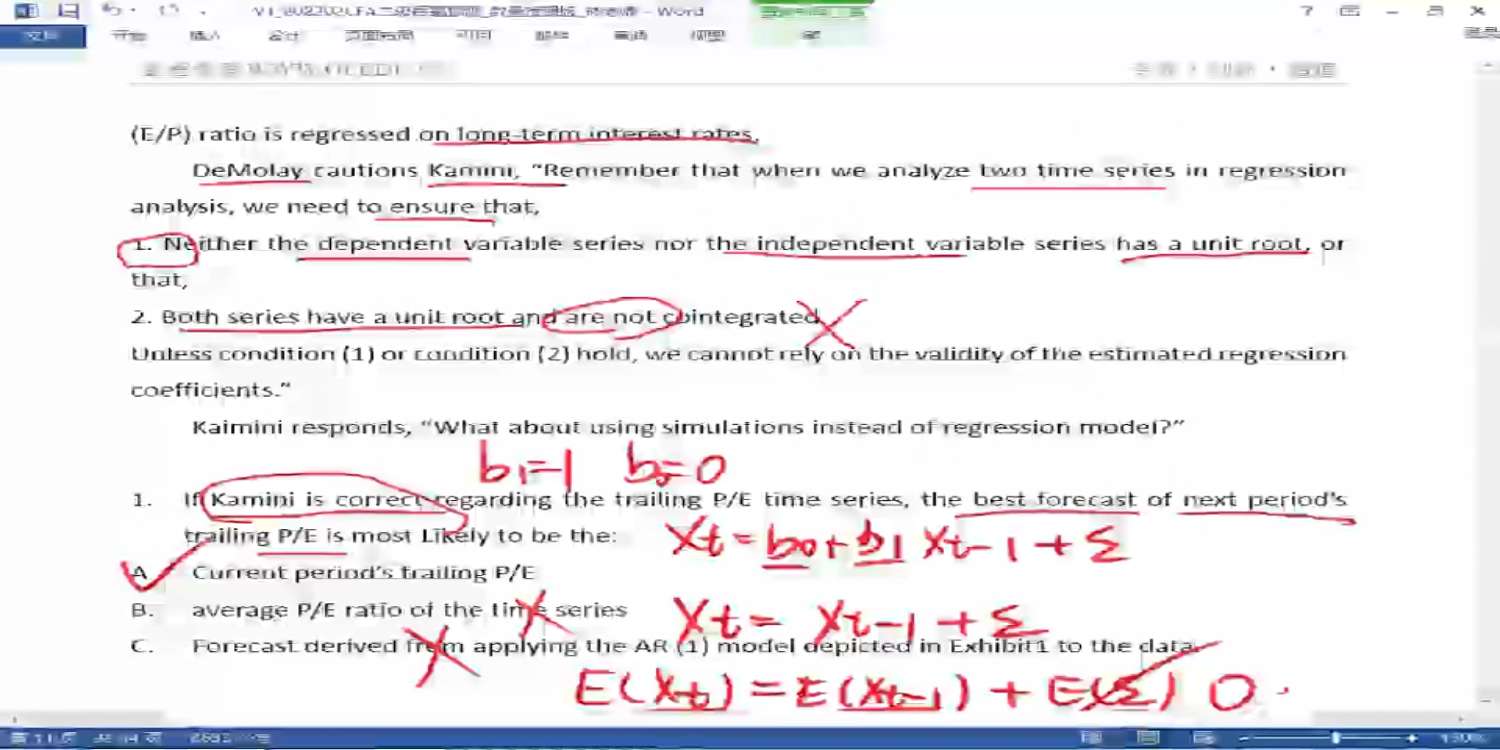 查看试题 已解决Q2,clean surplus假设我是明白的。但是题目原文也说了“This revision was included in other comprehensive income but not in net income. ”这句话呀~~~ 那还选A么。