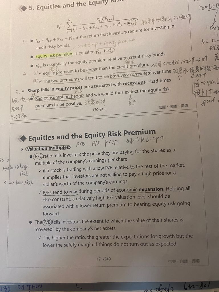 老师,这里第一小点的第二段话,Holding all else constant, 高P/E估值应伴随的是lower return premium. 这是为什么?