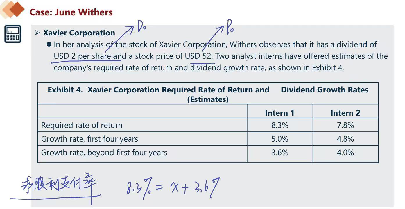 老师 这里为什么不能像我写的那个式子来算股利支付率呢?Re=D1/P0+g