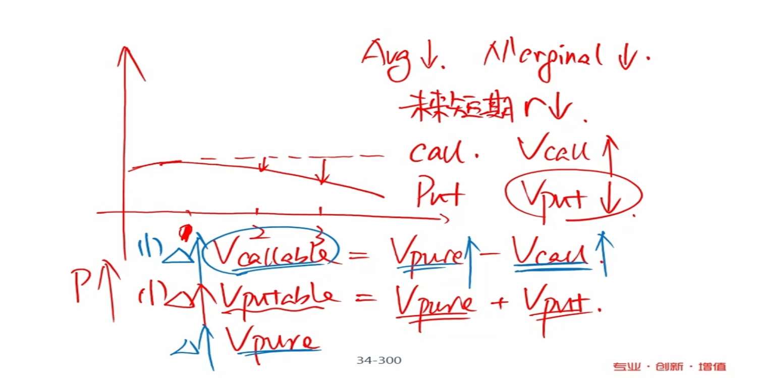 老师,这里yield curve变得flattening是指interest rate的改变,而不是波动率(thegma)的改变,对吧?而r的改变会导致Vpure, Vcall 和Vput 都发生改变,但波动率(thegma)的改变(即r的变化幅度改变)不会导致Vpure发生改变,只引起Vcall和Vput发生改变,是这意思吗?